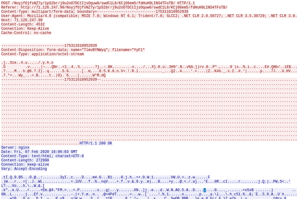 Additionally, instead of simply uploading the payload data inside the POST body, it is now sent as a file upload using multipart/form-data enctype.