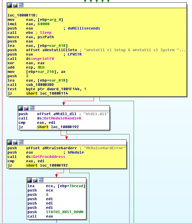 W mechanizmie nadpisywania sektora rozruchowego MBR nie stwierdzono istotnych zmian od zeszłorocznej kampanii. Po infekcji czyszczone są logi systemowe (Setup, System, Security, Application).
