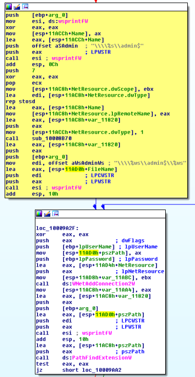Po uruchomieniu ransomware, zainfekowana stacja robocza skanowała lokalną podsieć (/24) pod kątem administracyjnych udziałów sieciowych ADMIN$ , celem kopii payloadu do innej maszyny i uruchomeniu go za pomocą PsExec.